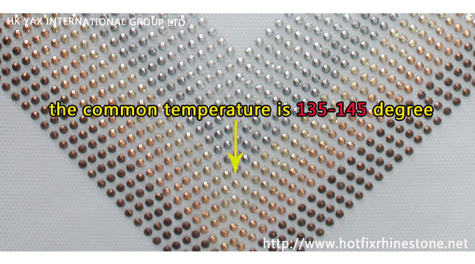 Answer: The average temperate to octagon(rhinestud) is 135-145 degree.It will vary on the sizes,fabric and thickness.Normally,the rhinestone will need higher temperature, around 140-150 degree.