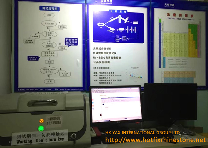 If you worry about the usage of lead free rhinestones and feel trouble for the testing, we would like to make an field inspection on YAX Eco-friendly laboratory for you. It only need 1-2 hours to finish an testing face to face,we can also help you to test some of other eco-friendly products.